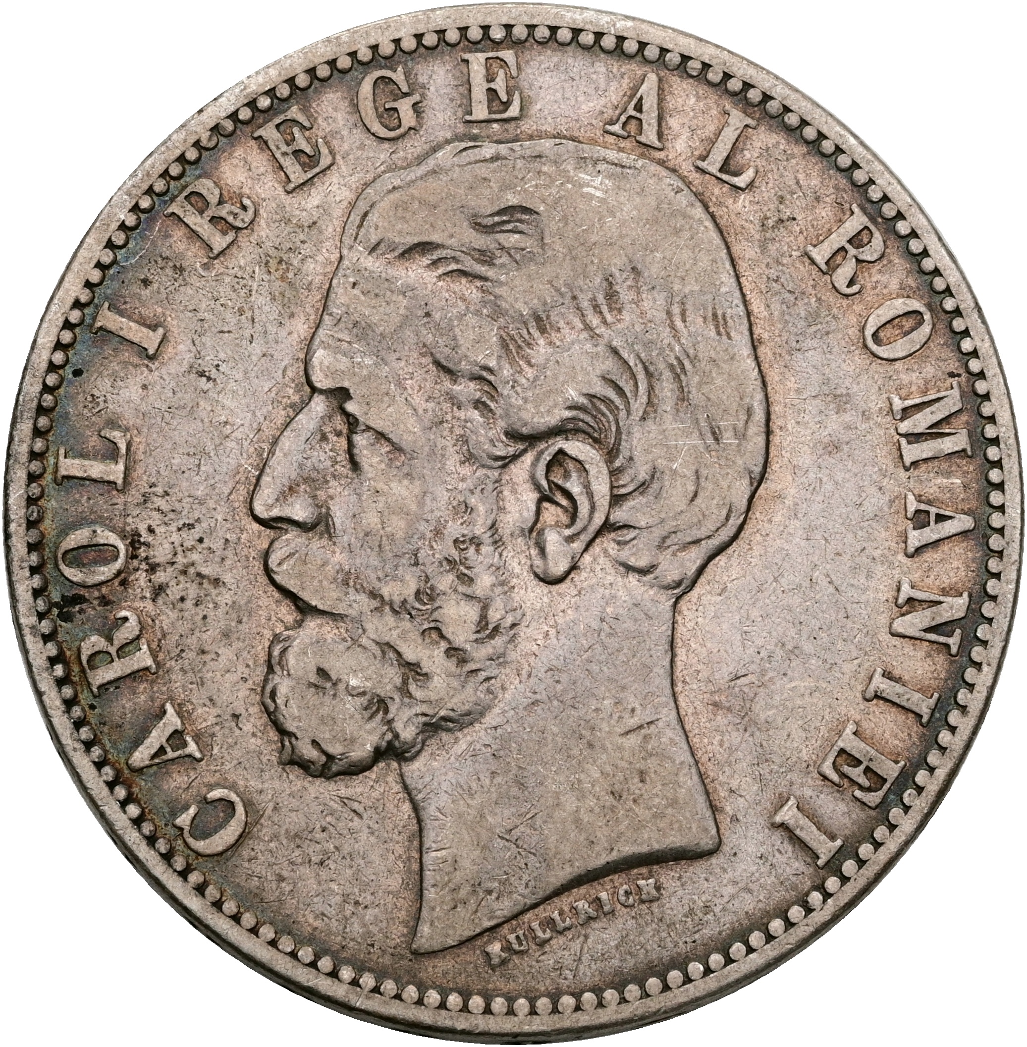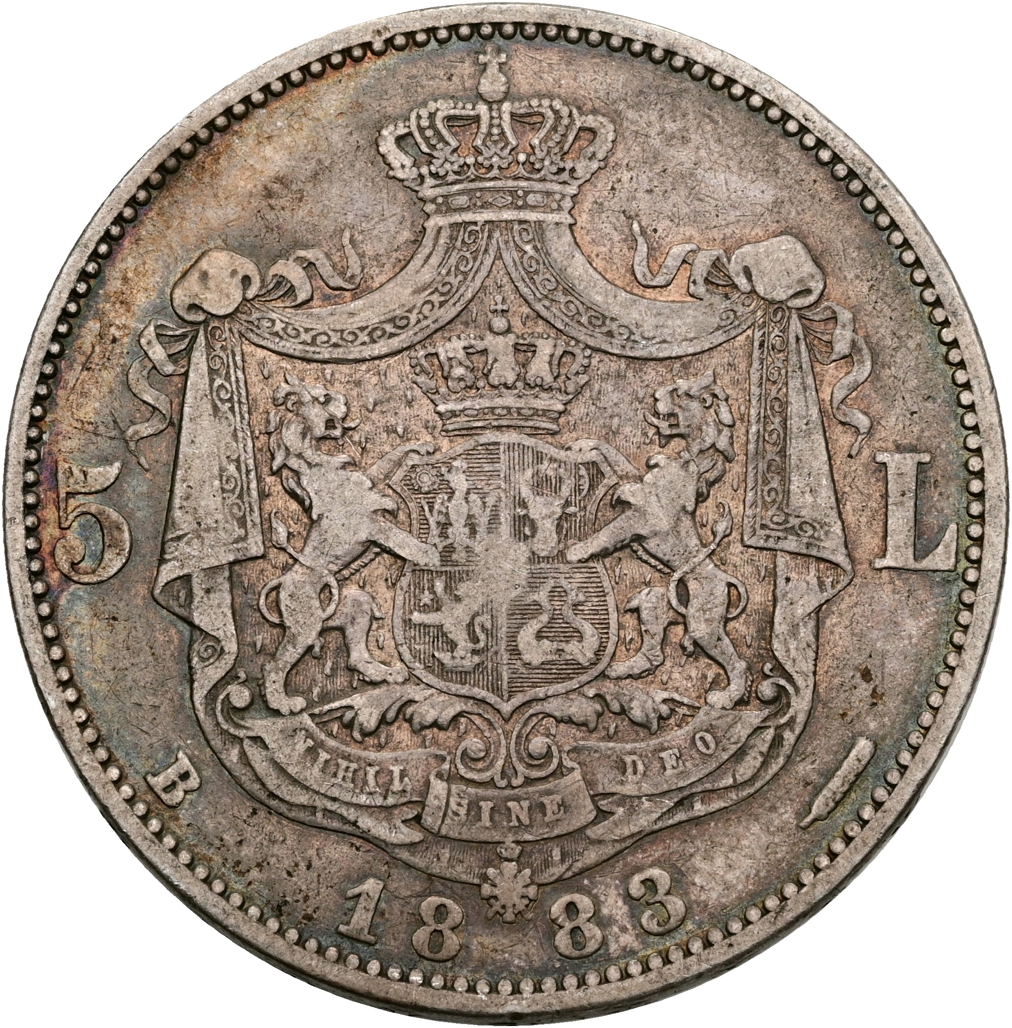 Romania, Carol I, 5 Lei 1883 B, KM 17, VF-F.