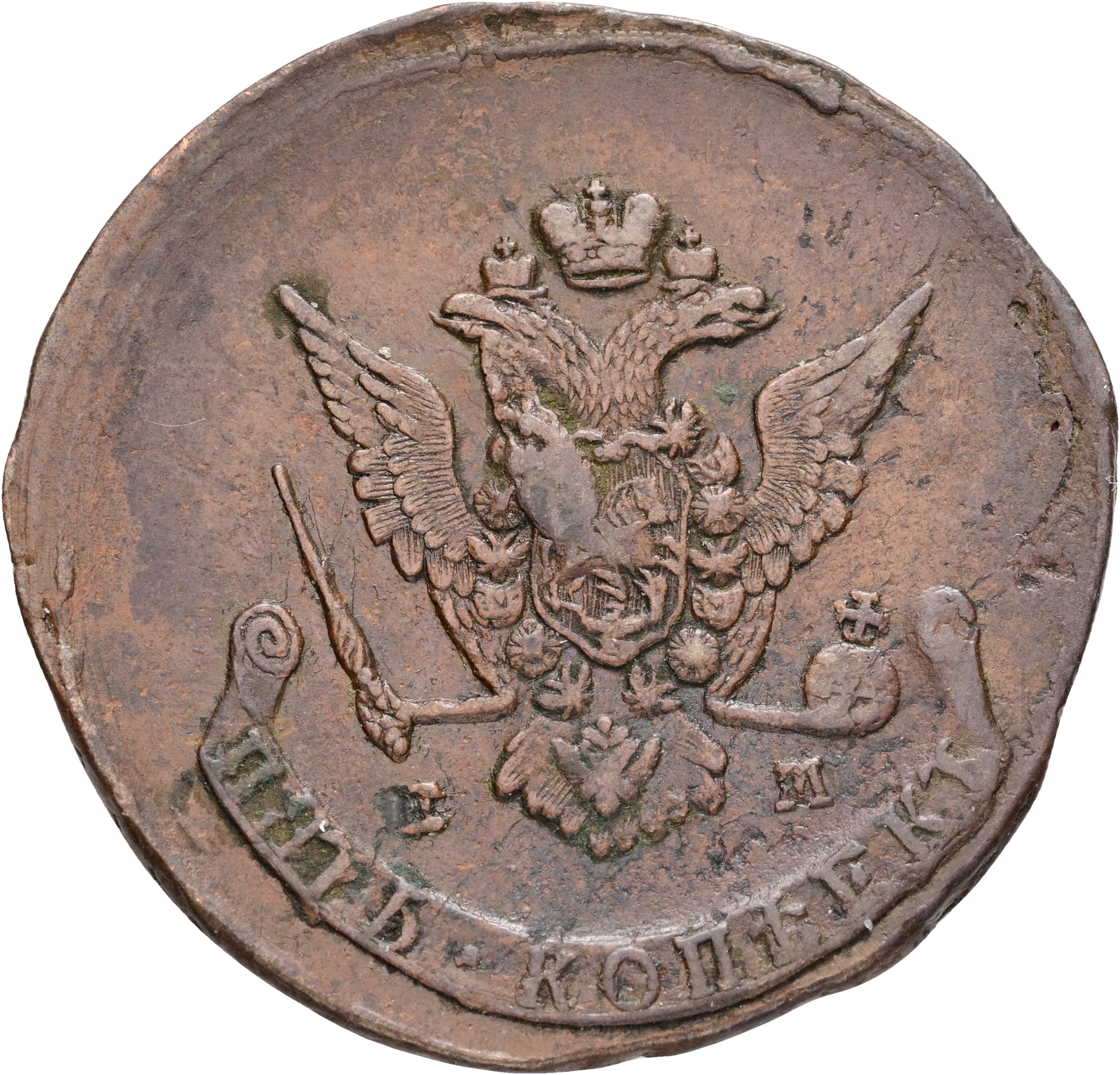 Russia, Catherine II, 5 Kopecks 1773 EM, C 59.3, VF/F, die cracks, scratch on obverse.