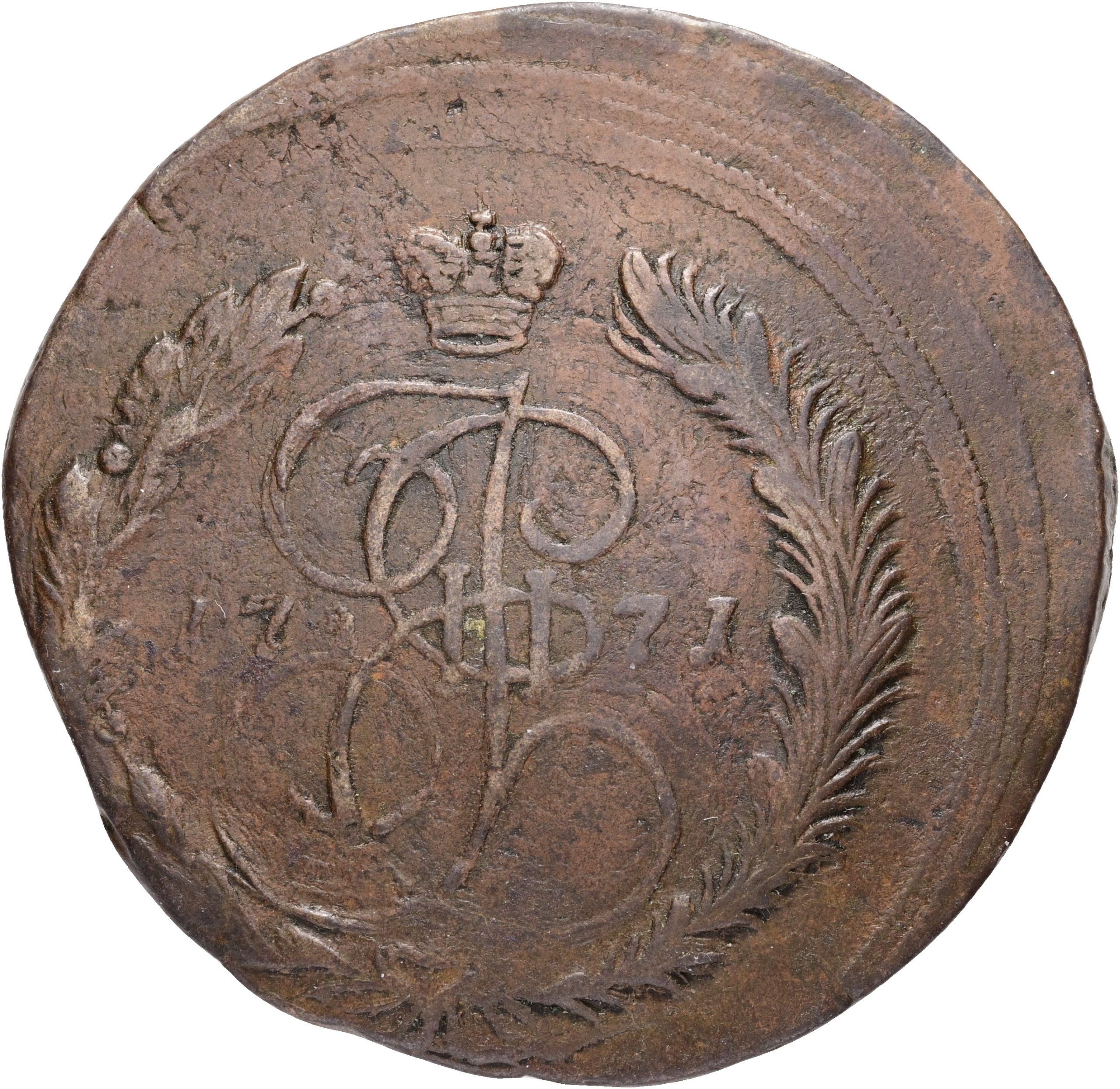 Russia, Catherine II, 5 Kopecks 1771 EM, C 59.3, VF, large planchet 48-50 mm.