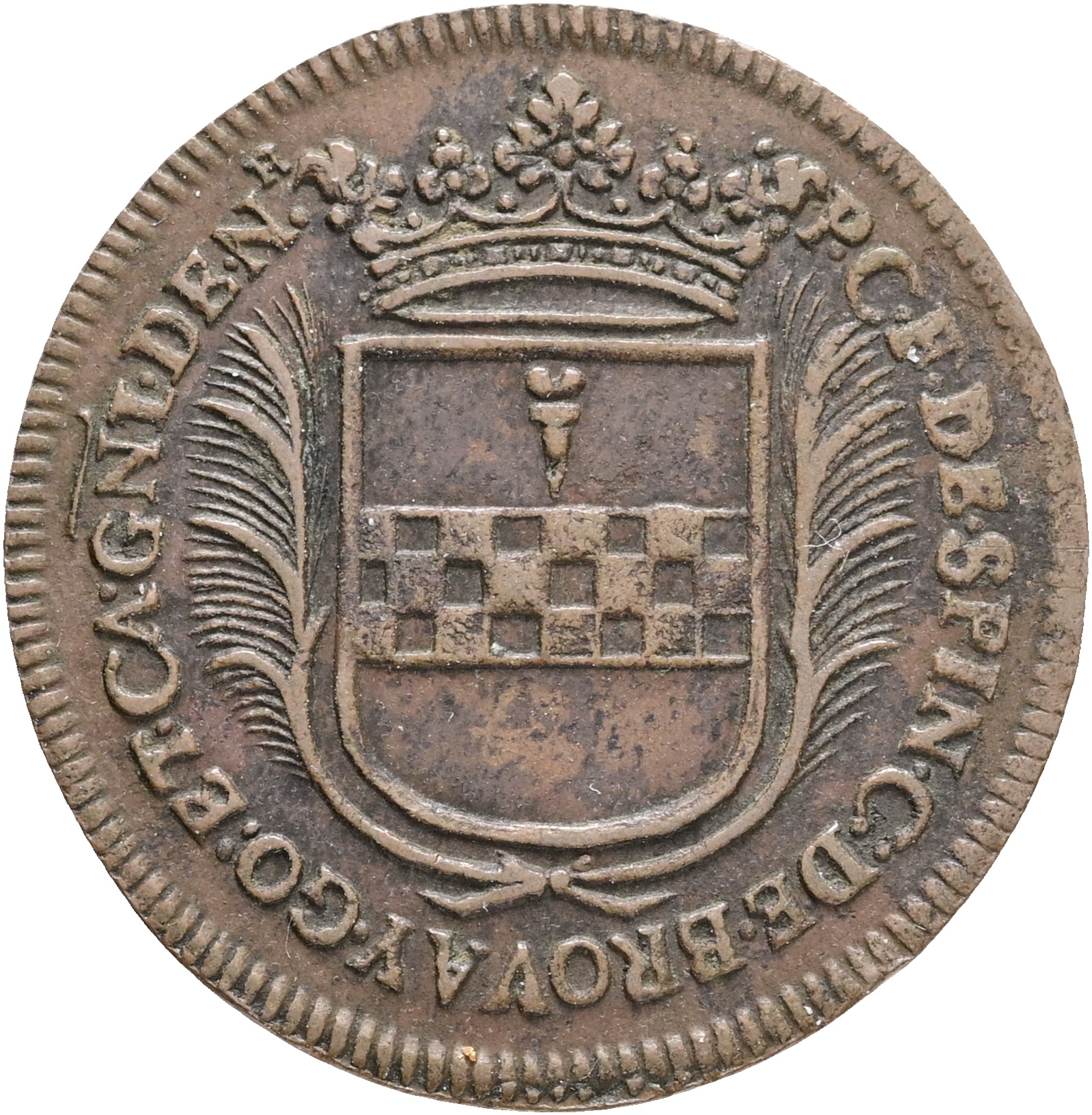 Southern Netherlands, Namur, Philippe Spinola, jeton, 1696, Ae, 28 mm, 7.09 g, Dugniolle 4607, VF