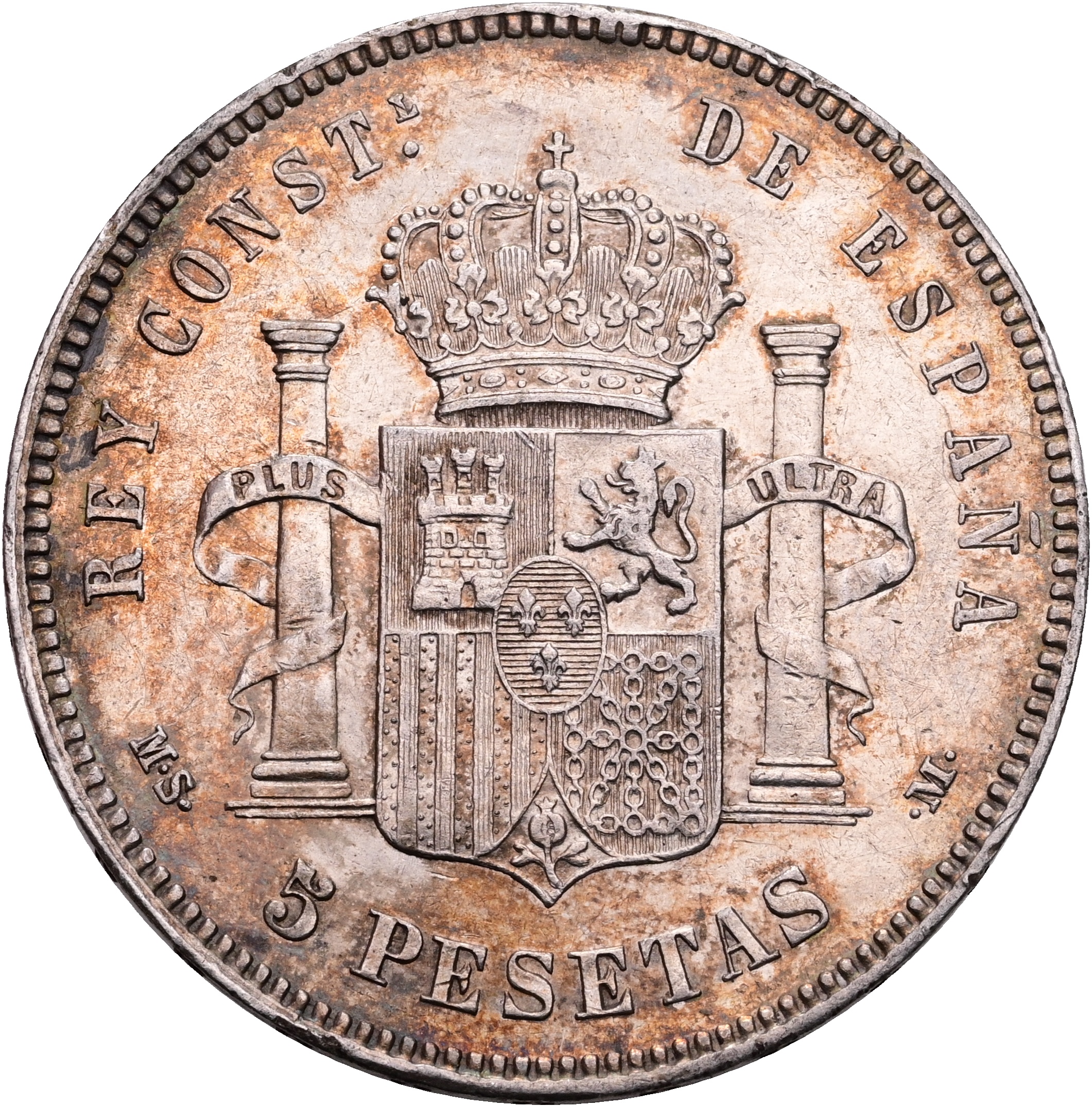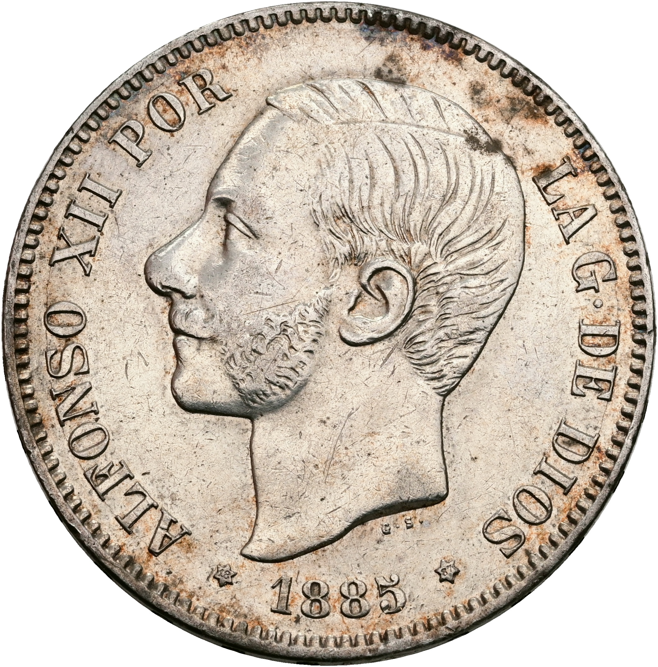 Spain, Alfonso XII, 5 Pesetas 1885 (1887) 🟌 MS M, KM 688, VF.