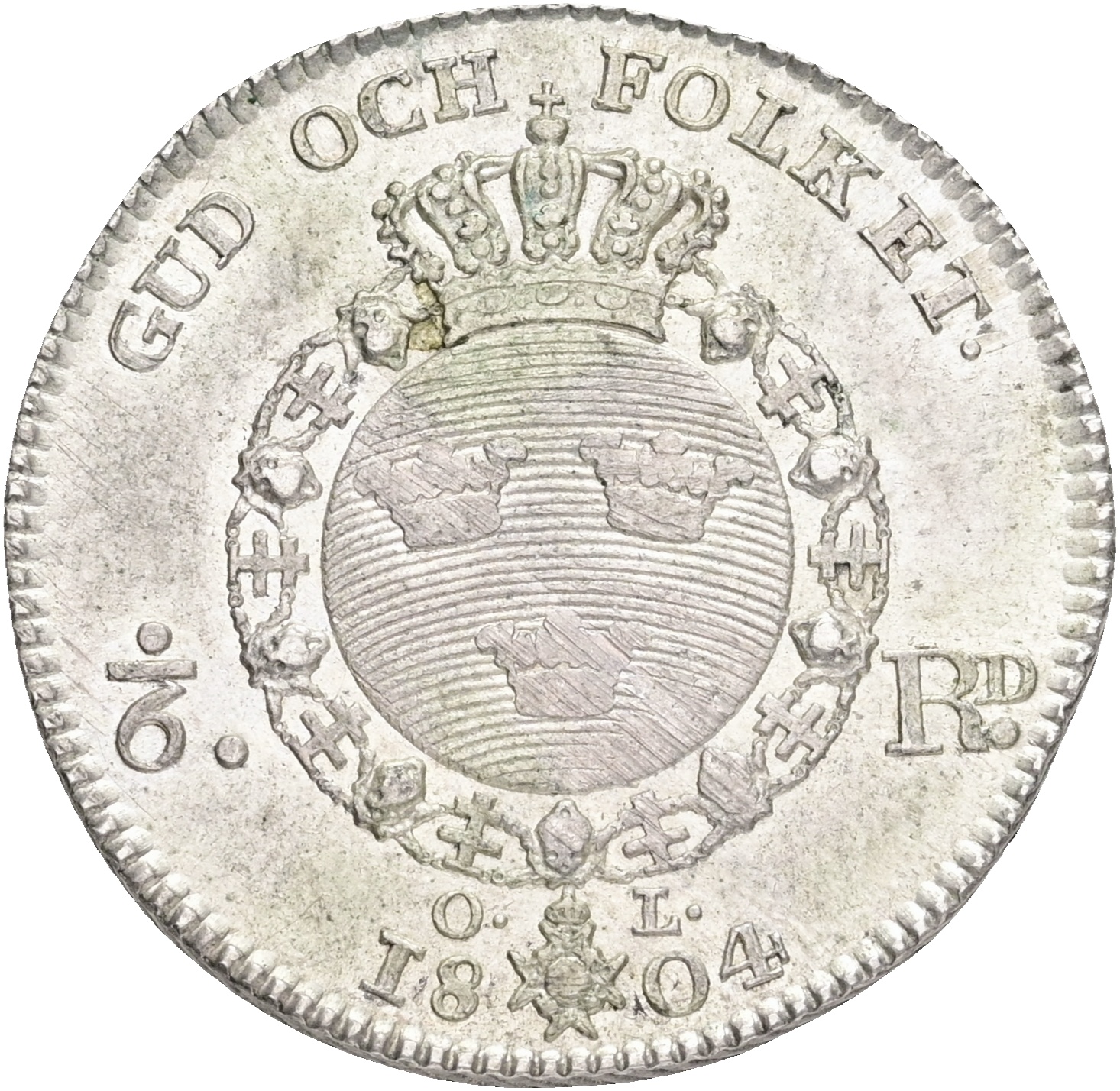 Sverige, Gustav IV Adolf, 1/6 riksdaler 1804, SM 39, kv. 0-01, Ex. Misab 16/1260