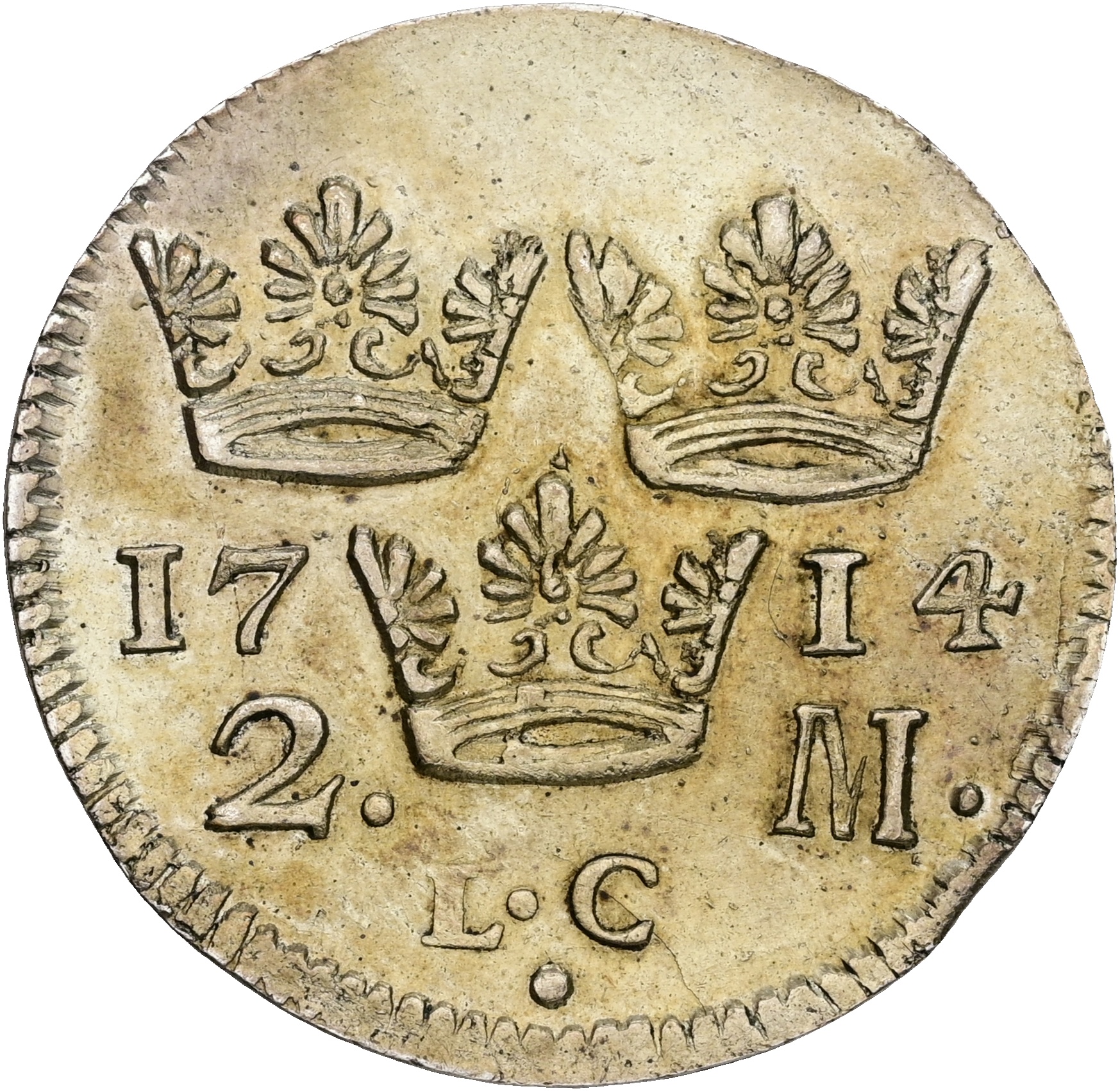Sverige, Karl XII, 2 mark 1714, SM 75, kv. 01, Ex. Myntkomp 8