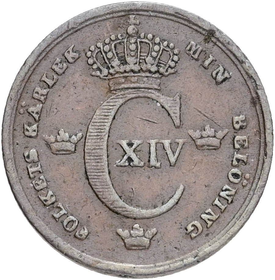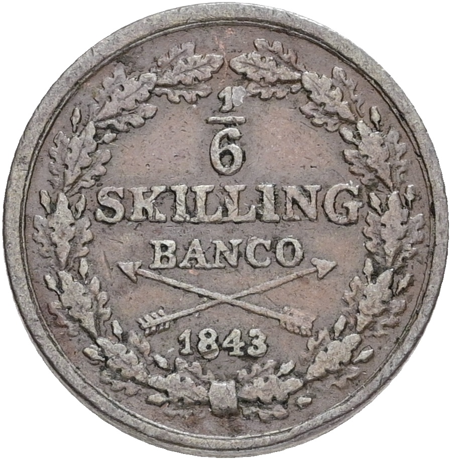 Sverige, Karl XIV Johan, 1/6 skilling 1843, SM 175, 1+
