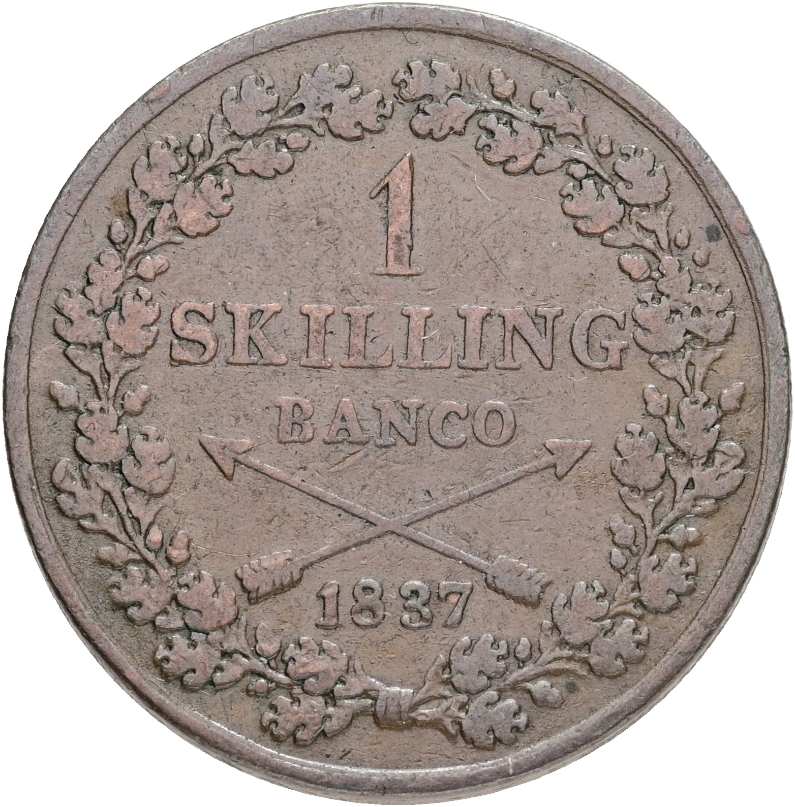 Sverige, Karl XIV Johan, skilling banco 1837, SM 149, 1+-1