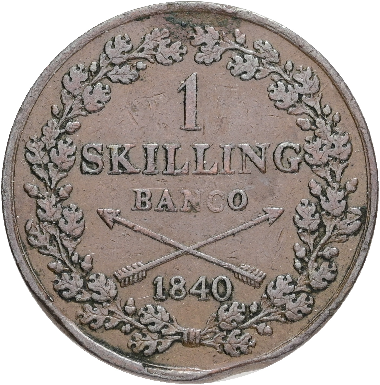 Sverige, Karl XIV Johan, skilling banco 1840, SM 152, 1+-1, hugpibemærke, korr.