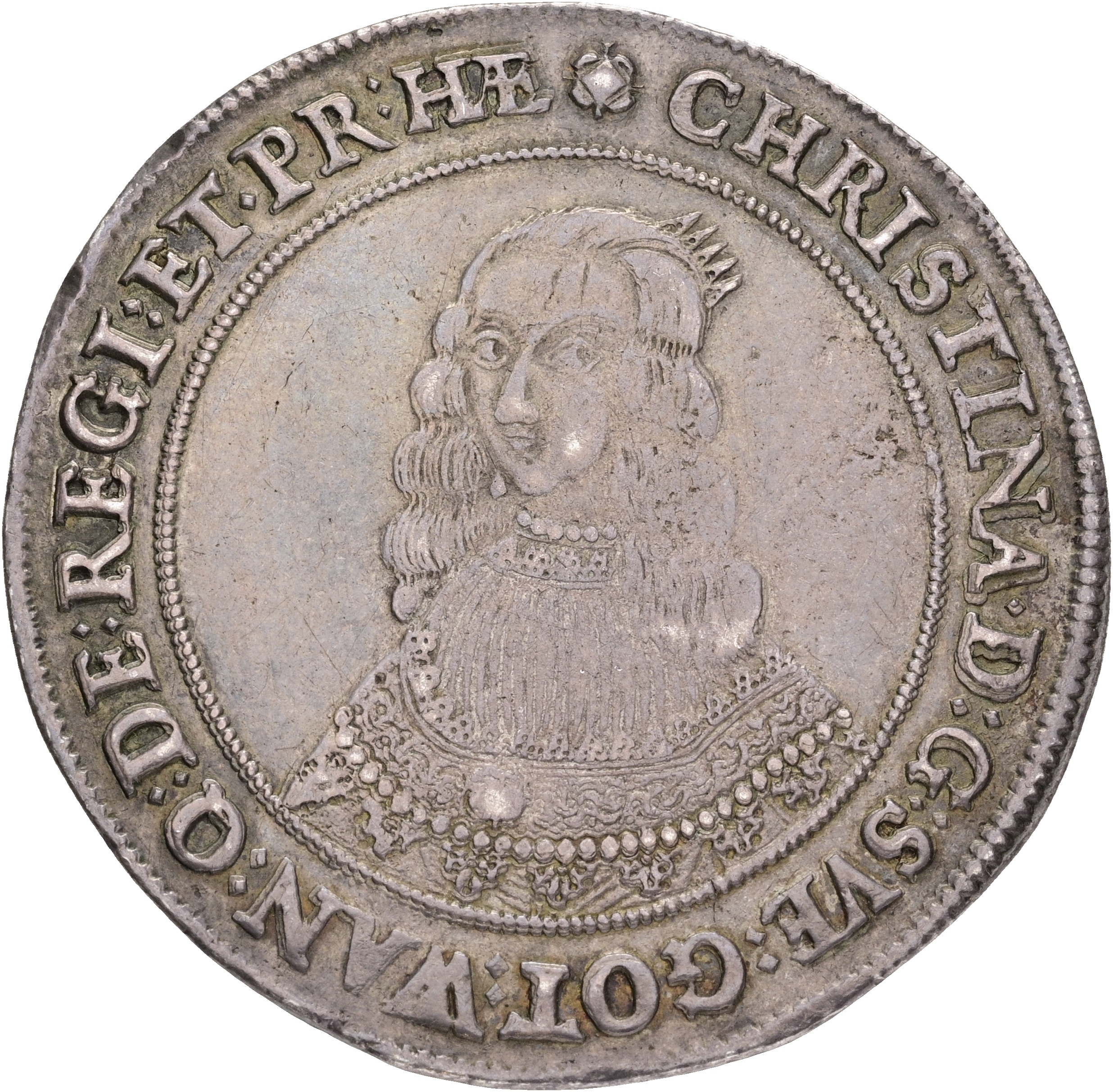Sverige, Kristina, Riksdaler 1643, SM 15, kv. 1+, Ex. Törngren, nydelig patina, fladt præget midt på.