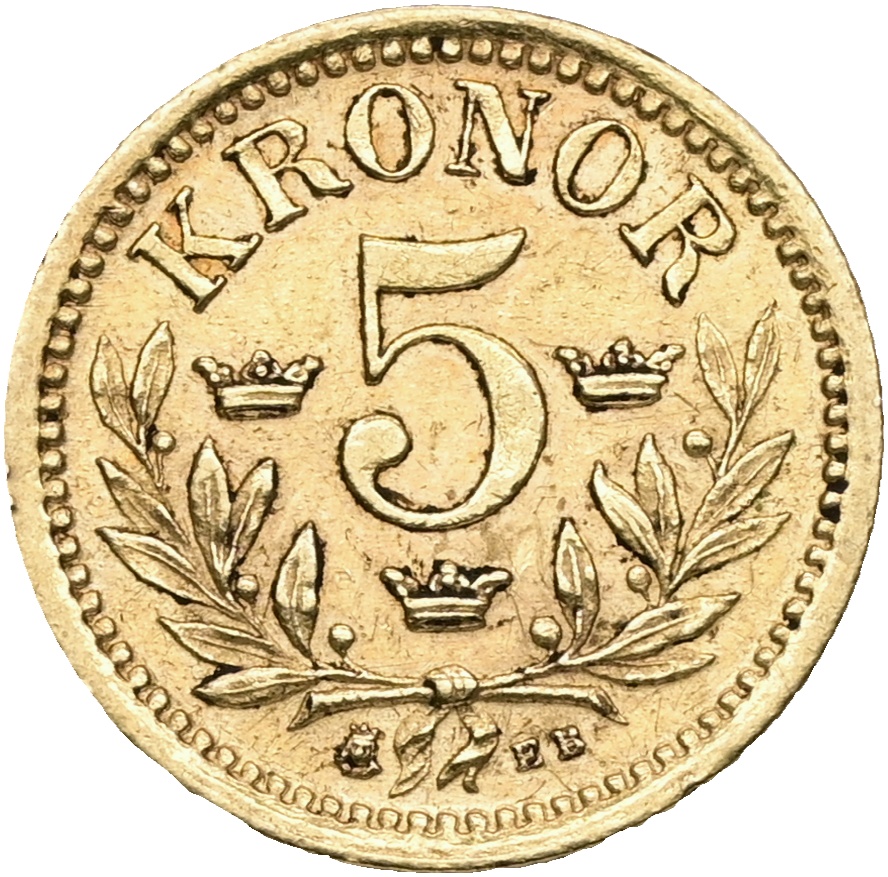 Sverige, Oscar II, 5 kronor 1894, SM 38, Sieg 83, kv. 1+, ridser