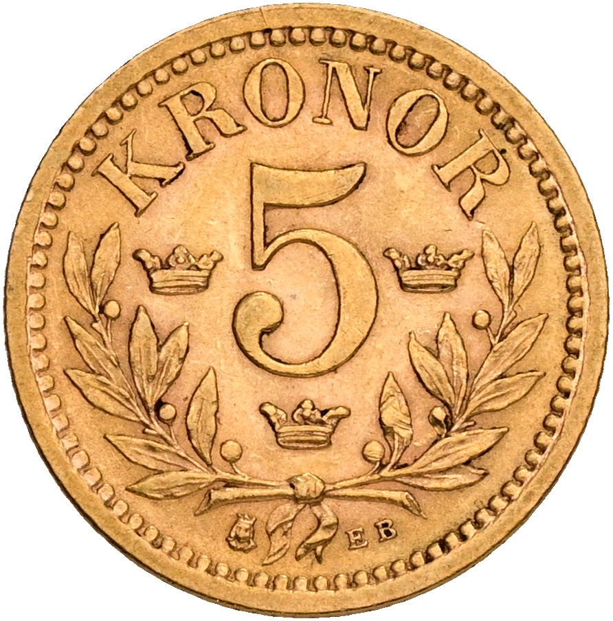 Sverige, Oscar II, 5 kronor 1901, SM 40, Fr. 95a, kv. 01-1+