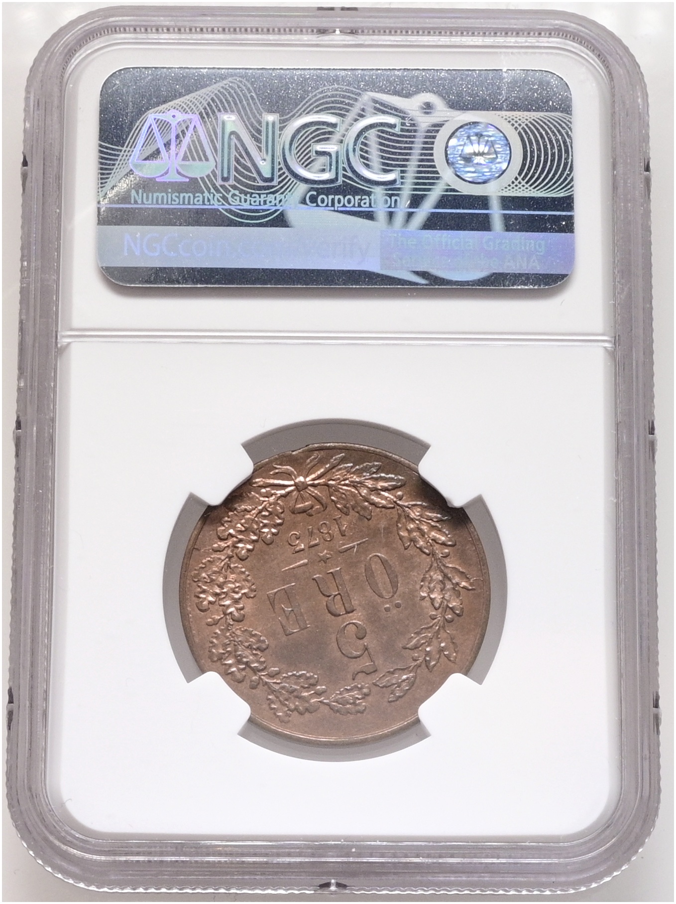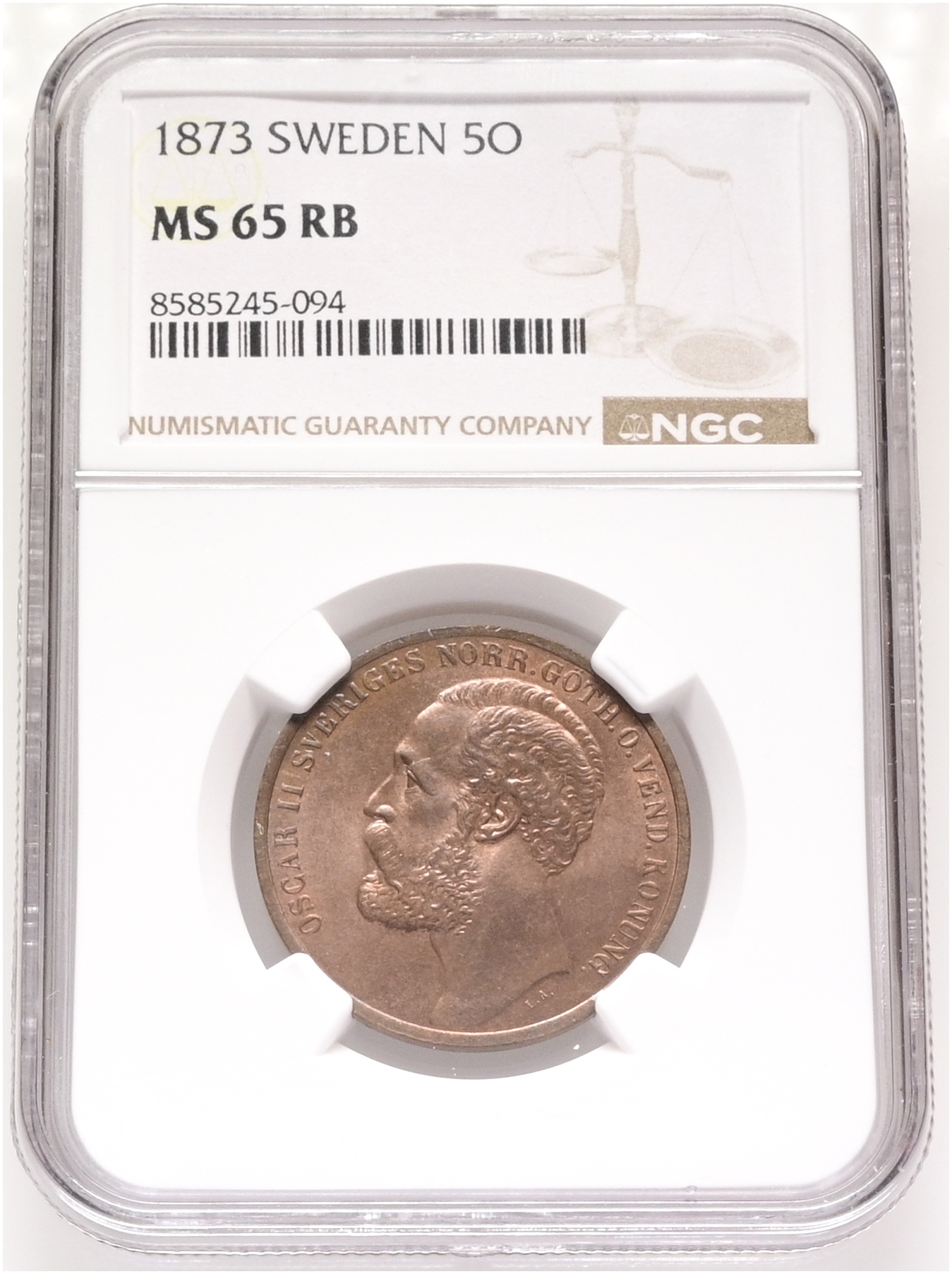 Sverige, Oscar II, 5 öre 1873, SM 132, Sieg 3A, NGC MS 65 RB.