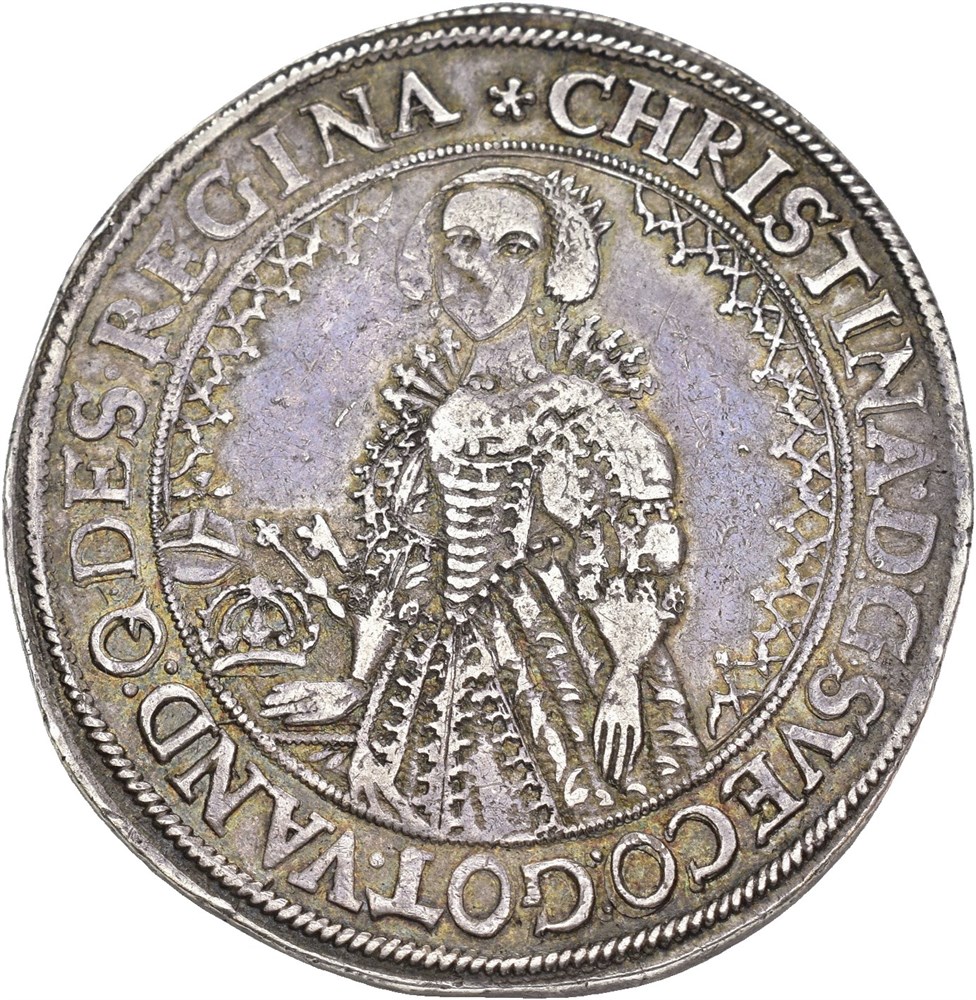 Sverige, Pommern, Kristina (1632-1654), Taler 1640, Stettin, SB 12, kv. 1+, lille blanketfejl på bagsiden.