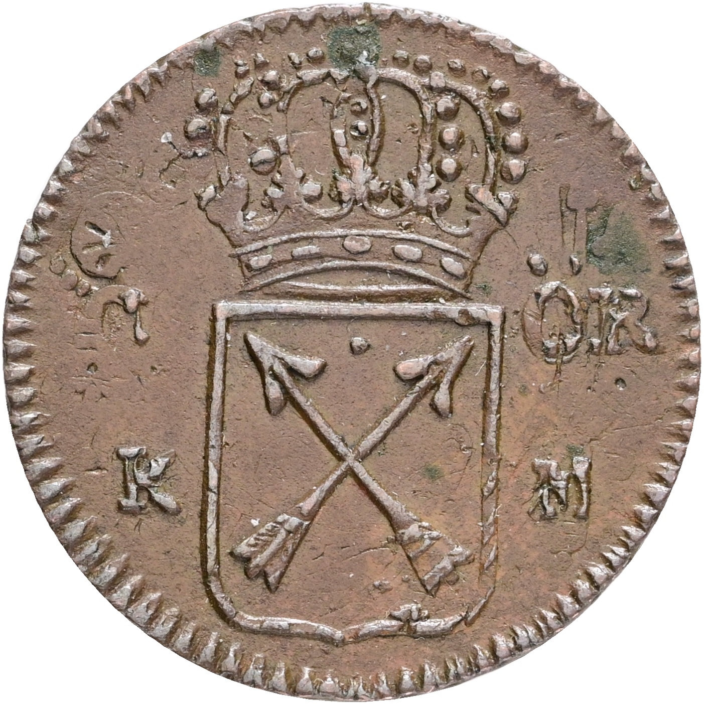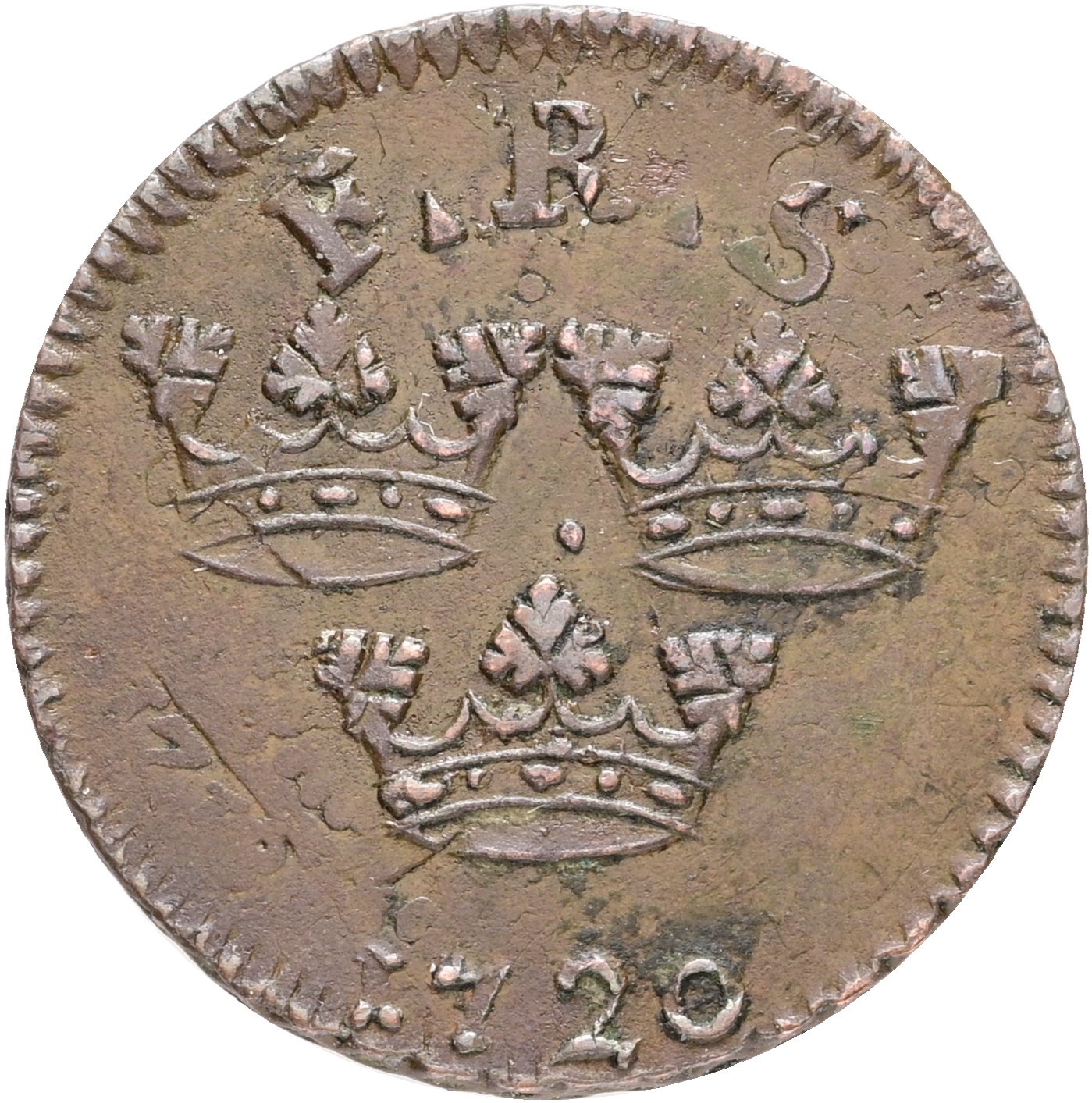 Sverige, Ulrika Eleonora, 1 öre 1720, SMB 29, kv. 1+, overpræget på nødmønt, korr.