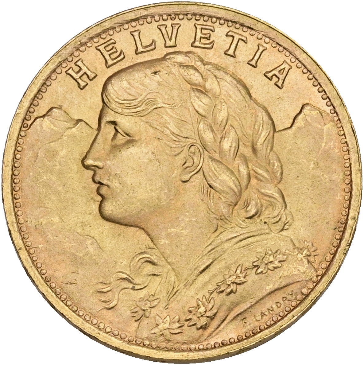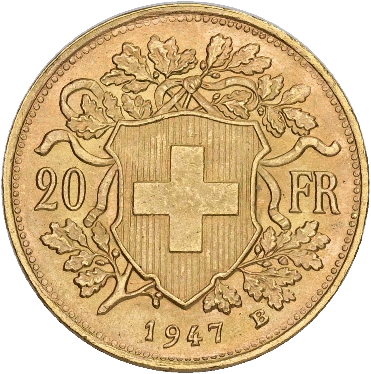Switzerland, 20 Franken Vreneli 1947 B, HMZ 2-1195, F 499, EF