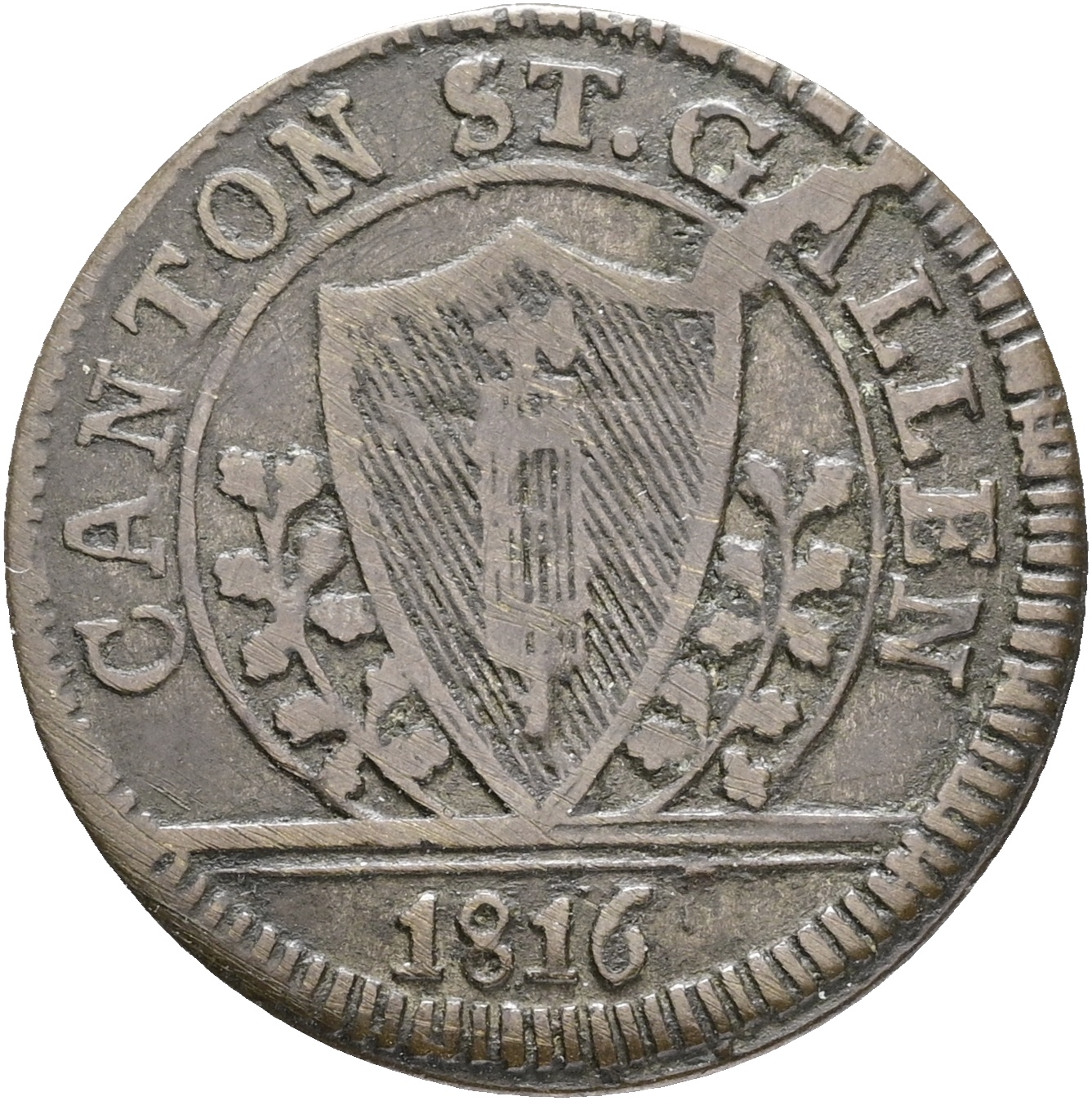 Switzerland, St. Gallen, 1 Batzen 1816, KM 110, VF, cleaned in fields.