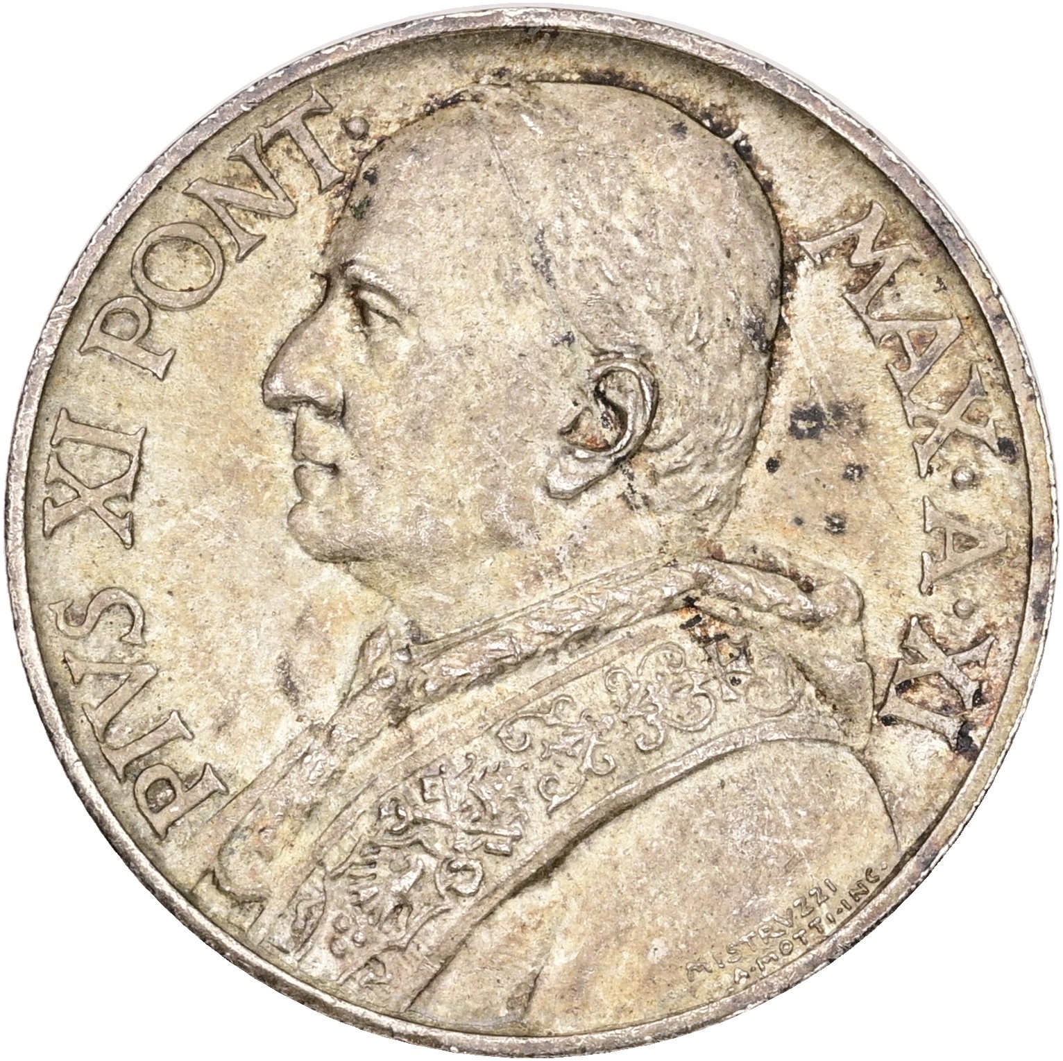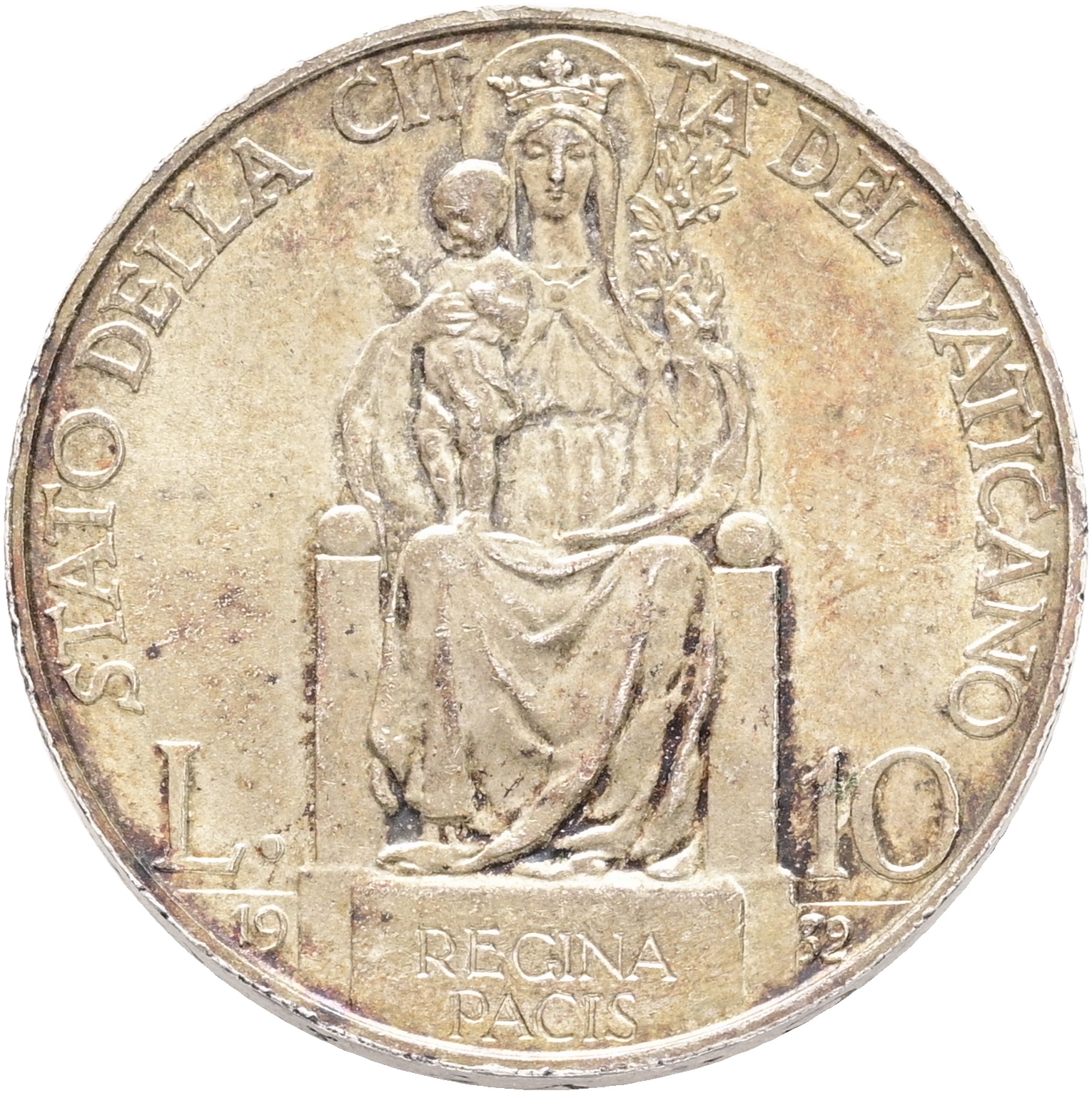 Vatican City, Pius XI, 10 Lire 1932, KM 8, AU